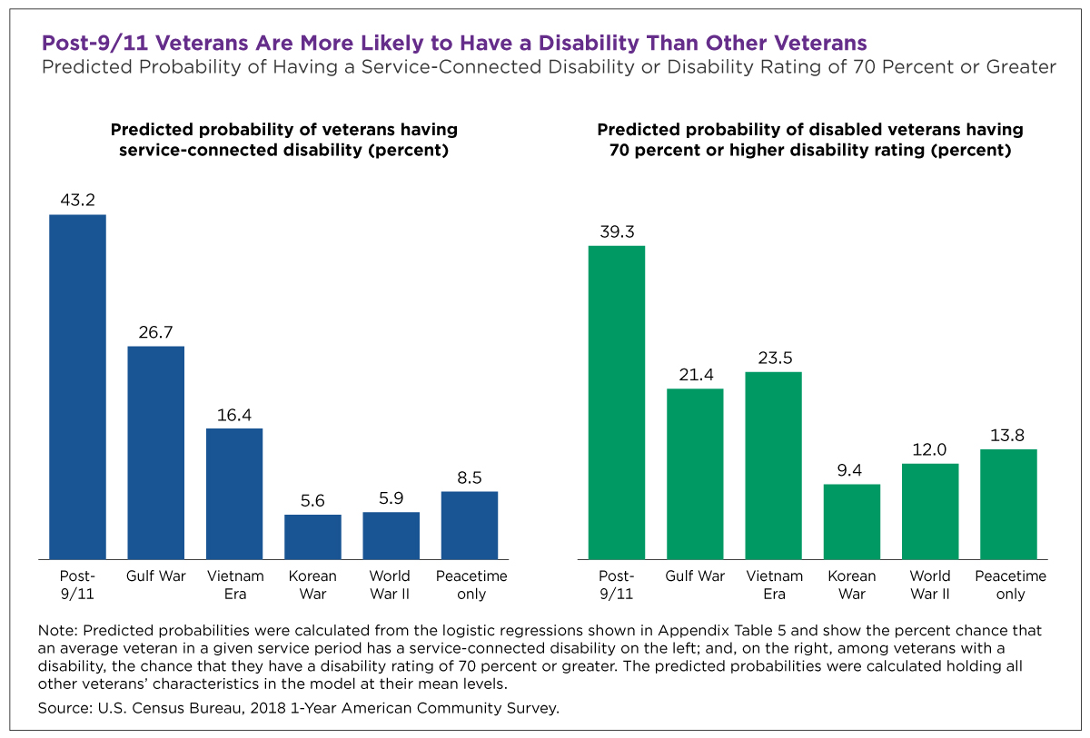 Prevent Disabilities. Forty percent of post-9/11 veterans have a disability rating. The most common disabilities are hearing, back, and knee problems. Overwhelmingly, these are not the unavoidable results of combat, but rather the results of failure to train and protect our troops adequately. The military bought defective 3M earplugs for years, leading to one of the largest class action settlements in history for hearing damage to veterans. Back and knee injuries often arise from failing to train troops properly on injury prevention, using human labor when mechanical means would be safer, and insufficient physical conditioning for the stresses of their work. Would you recommend your child take a job that had a 40% risk of permanent disability?